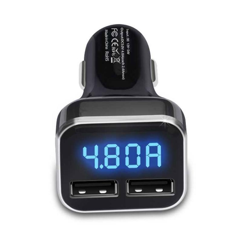 4 In 1 Dual Usb Car Charger Voltmeter Ammeter Monitor Thermomete