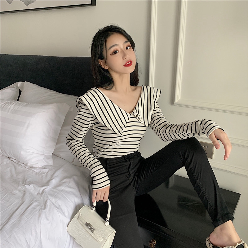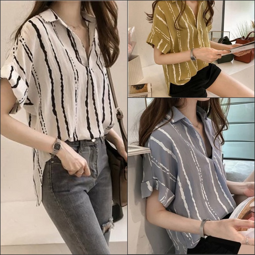Bayar Di Tempat Korean Style Women Short Sleeve Stripe V Neck