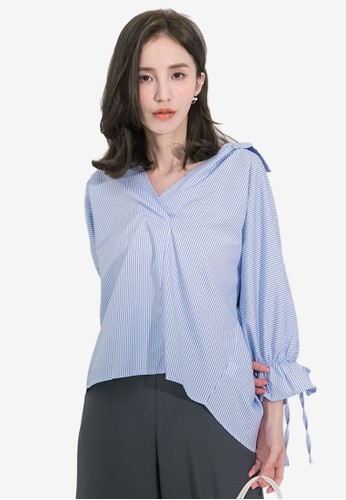 Jual Kodz V Neck Slit Stripe Short Sleeve Top Original Zalora